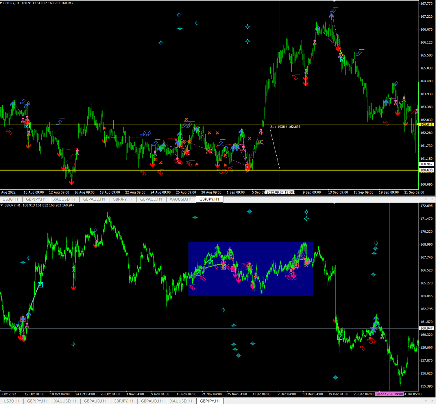 而原因就是因為黃金的波動率變大超過這個高低點距離的參數,所以交易機會都被濾掉。